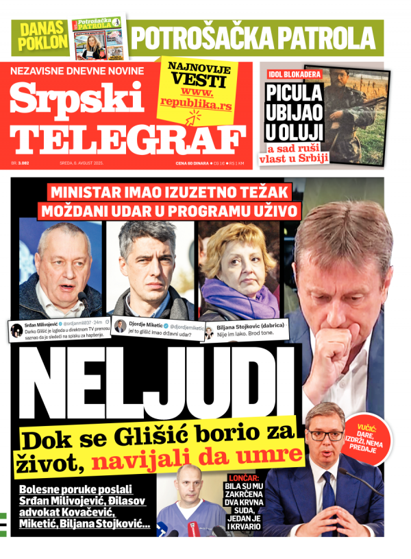 Naslovna strana Srpskog telegrafa za 06.08.2025.