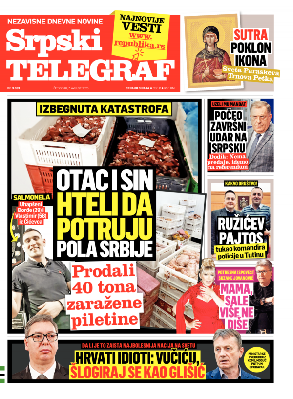 Naslovna strana Srpskog telegrafa za 07.08.2025.