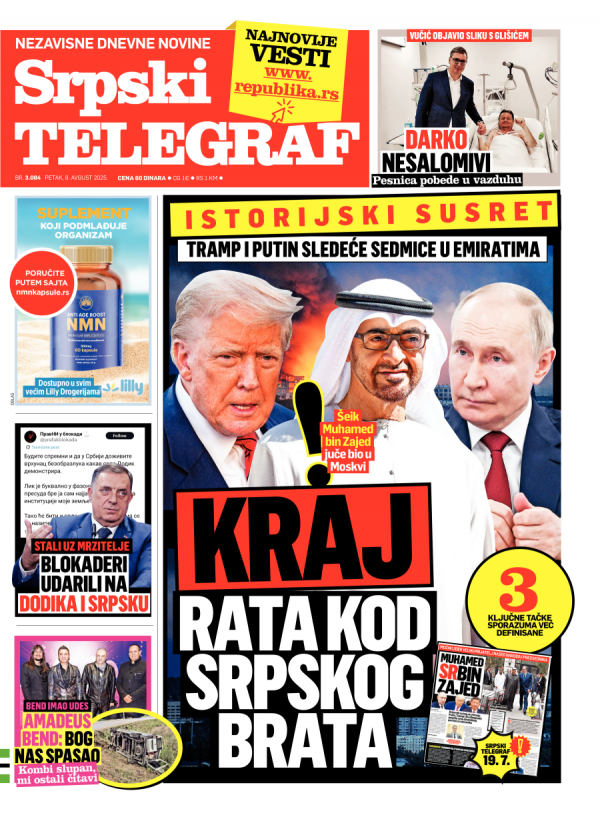 Naslovna strana Srpskog telegrafa za 08.08.2025.