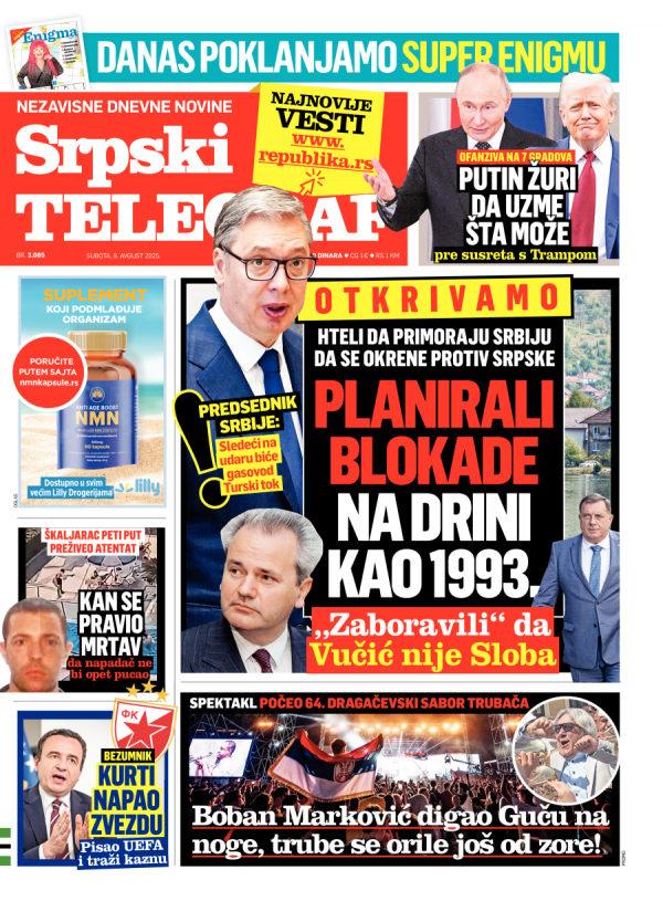 Naslovna strana Srpskog telegrafa za 09.08.2025.