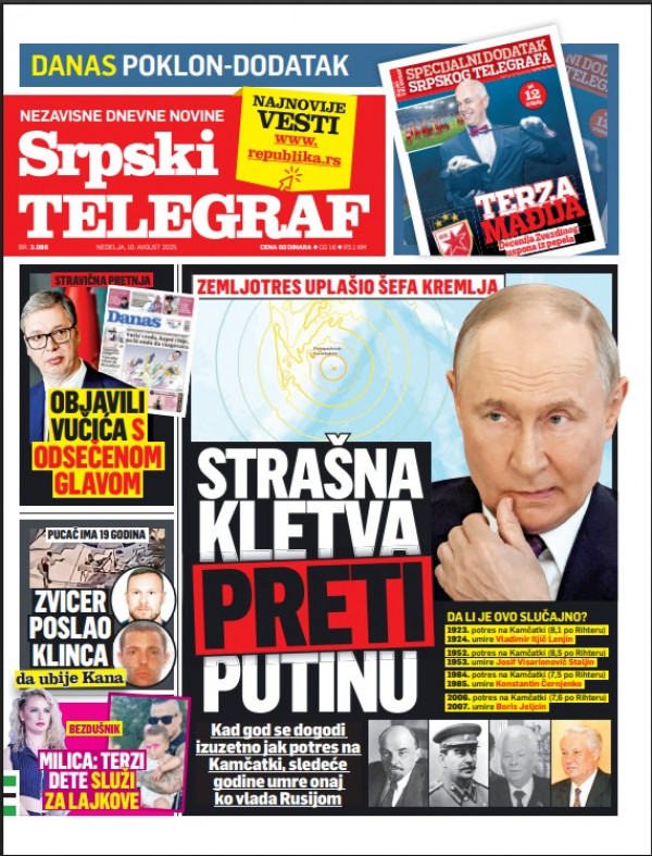 Naslovna strana Srpskog telegrafa za 10.08.2025.