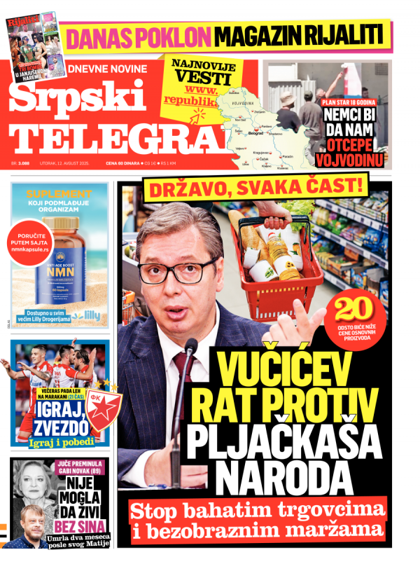 Naslovna strana Srpskog telegrafa za 12.08.2025.