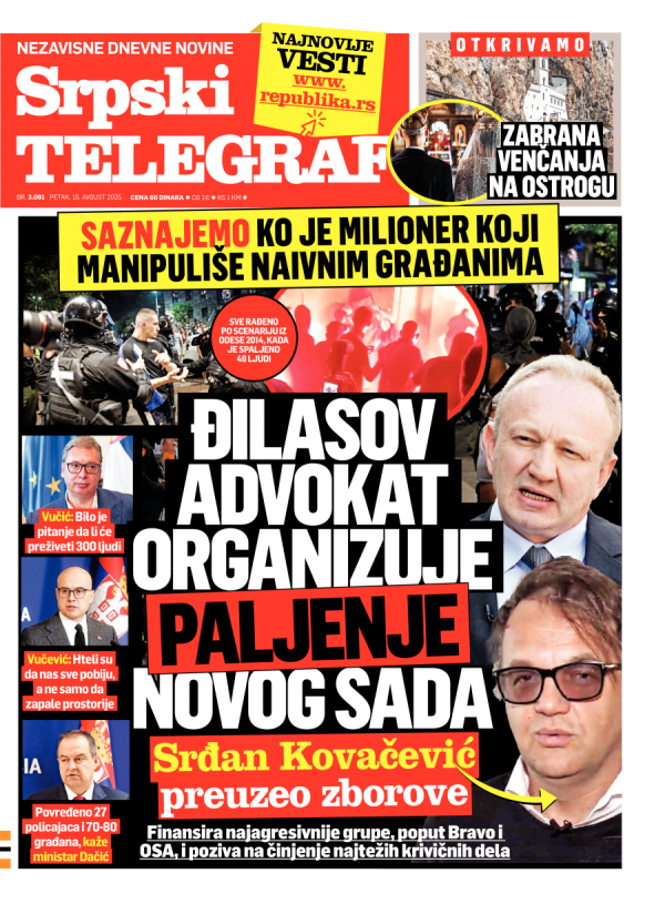 Naslovna strana Srpskog telegrafa za 15.08.2025.