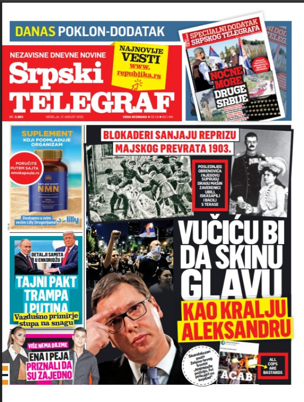 Naslovna strana Srpskog telegrafa za 17.08.2025.