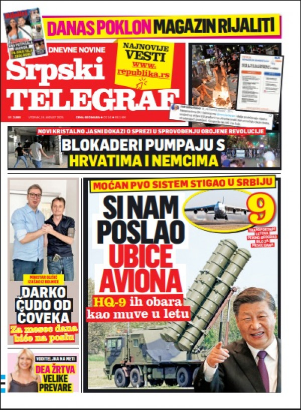 Naslovna strana Srpskog telegrafa za 19.08.2025.