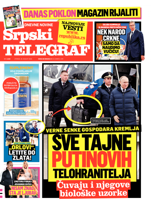 Naslovna strana Srpskog telegrafa za 26.08.2025.