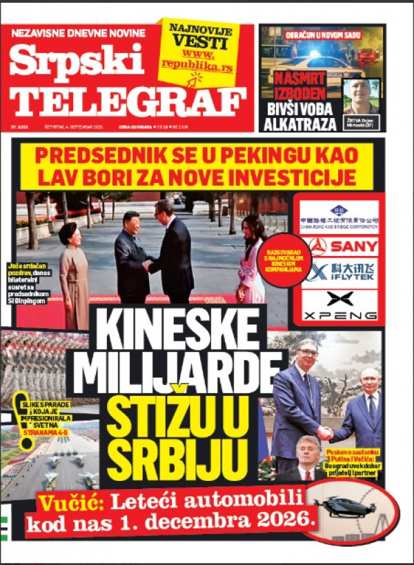 Naslovna strana Srpskog telegrafa za 04.09.2025.