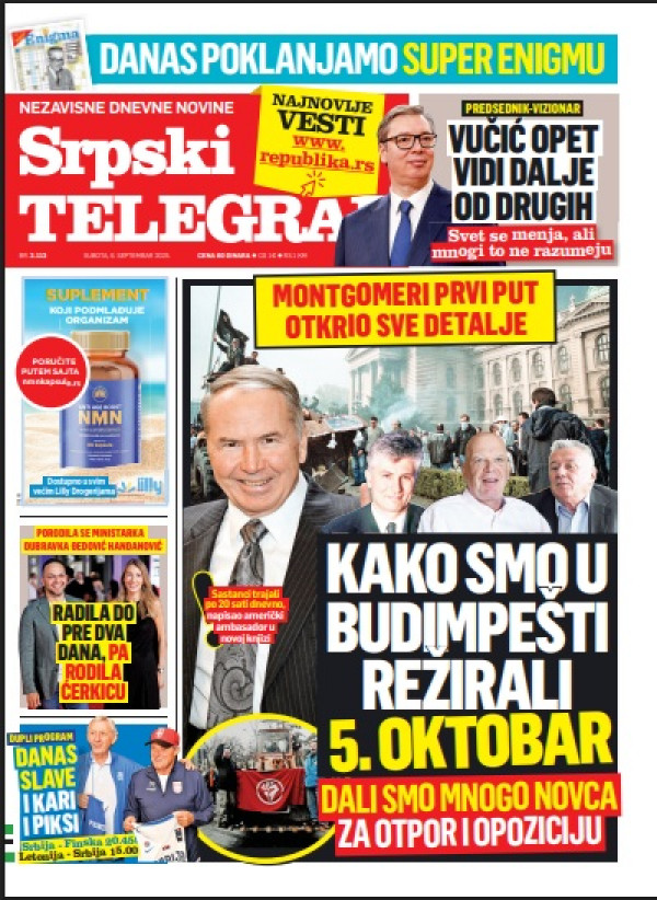 Naslovna strana Srpskog telegrafa za 06.09.2025.