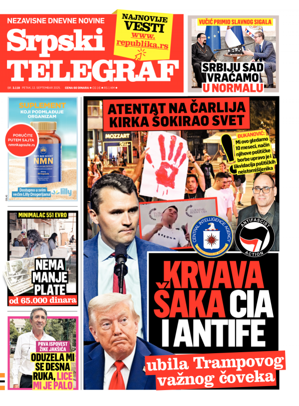 Naslovna strana Srpskog telegrafa za 12.09.2025.