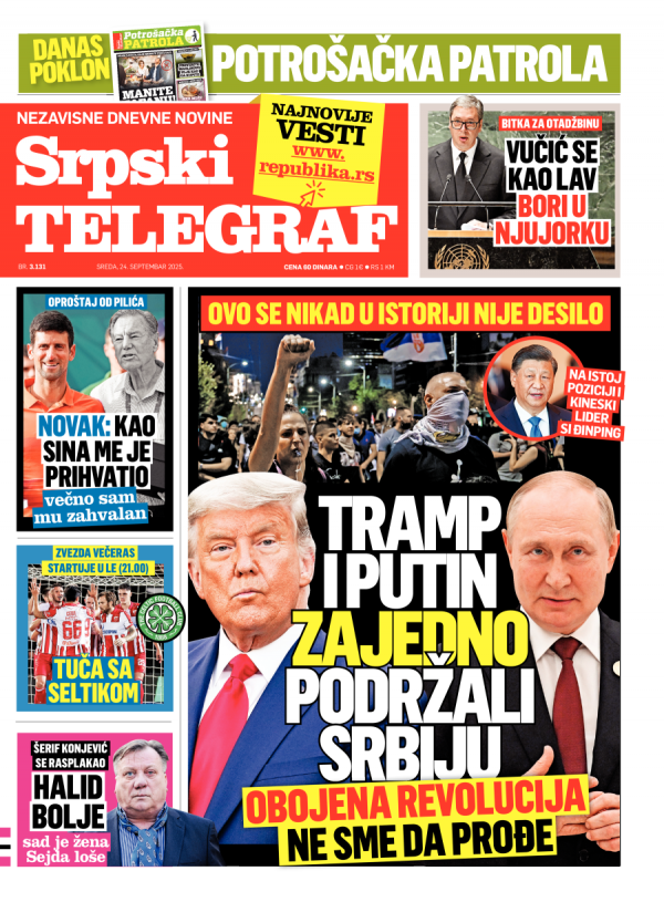 Naslovna strana Srpskog telegrafa za 24.09.2025.