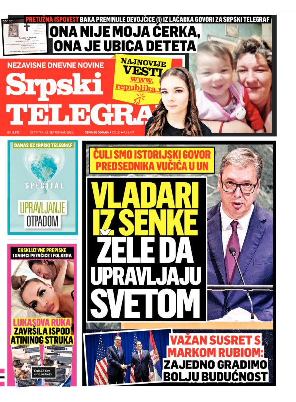Naslovna strana Srpskog telegrafa za 25.09.2025.