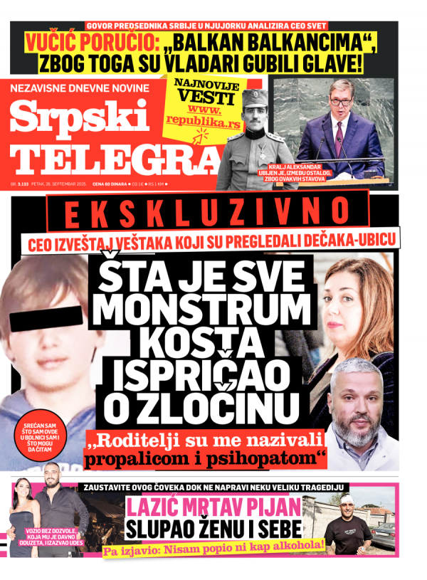Naslovna strana Srpskog telegrafa za 26.09.2025.