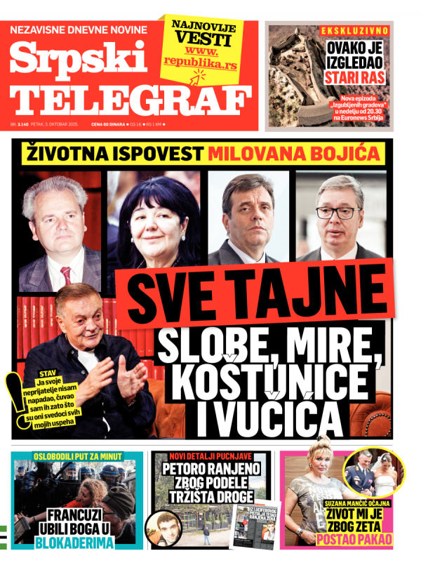 Naslovna strana Srpskog telegrafa za 03.10.2025.