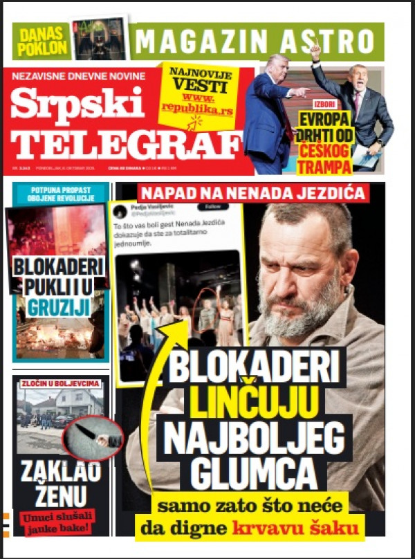 Naslovna strana Srpskog telegrafa za 06.10.2025.