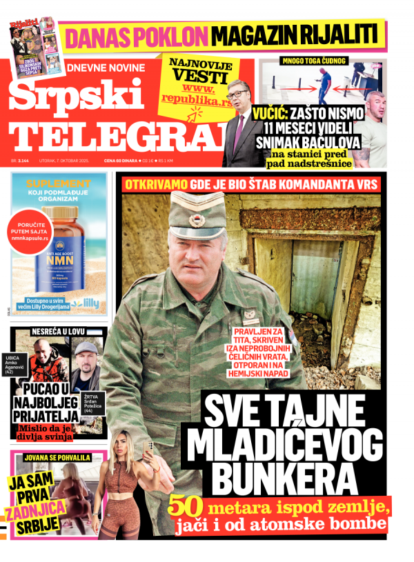 Naslovna strana Srpskog telegrafa za 07.10.2025.