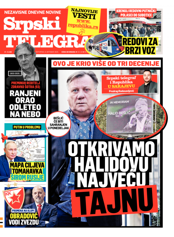 Naslovna strana Srpskog telegrafa za 09.10.2025.