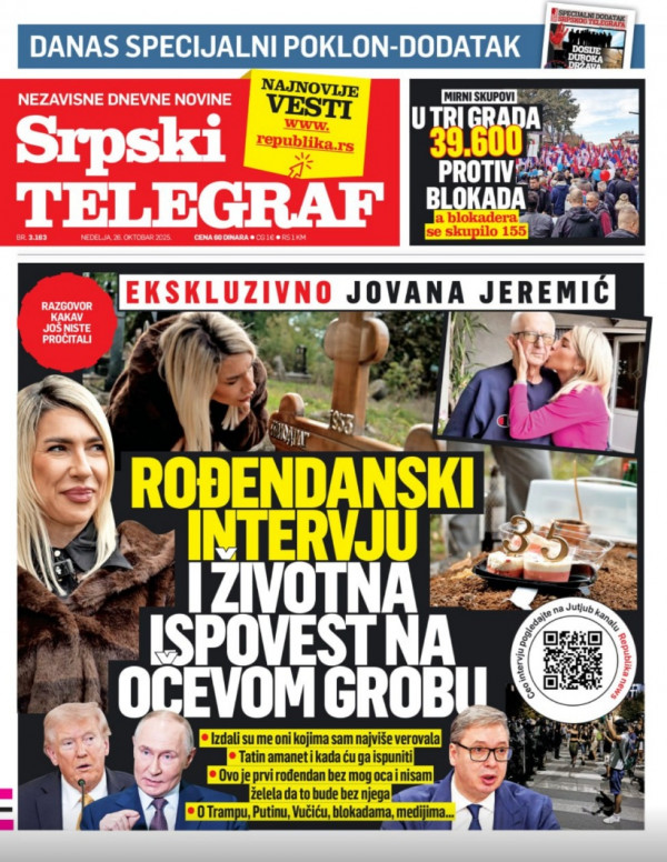 Naslovna strana Srpskog telegrafa za 26.10.2025.