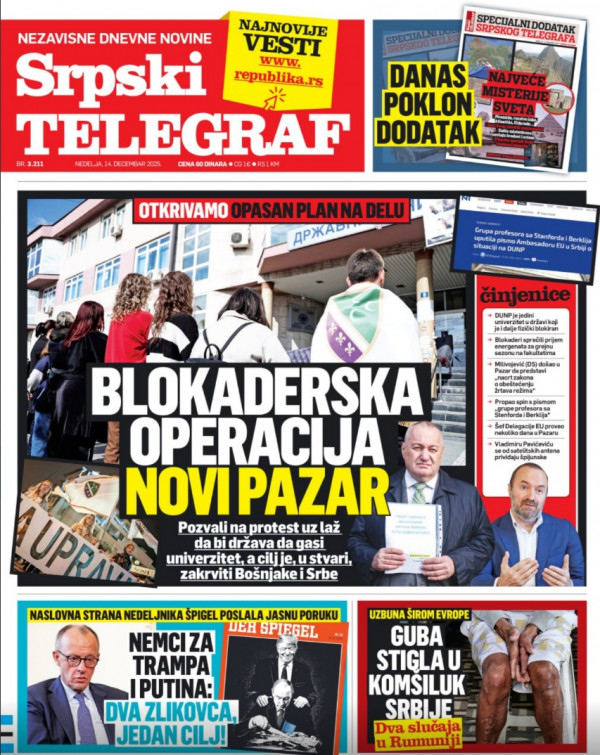 Naslovna strana Srpskog telegrafa za 14.12.2025.