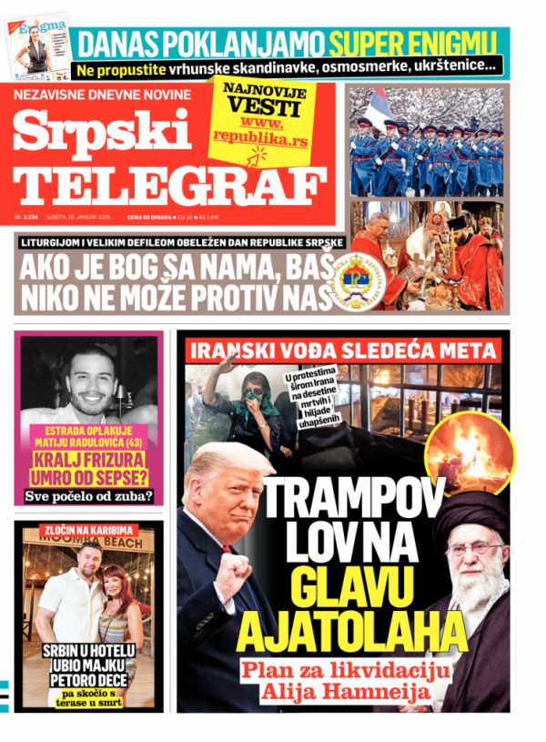 Naslovna strana Srpskog telegrafa za 10.01.2026.