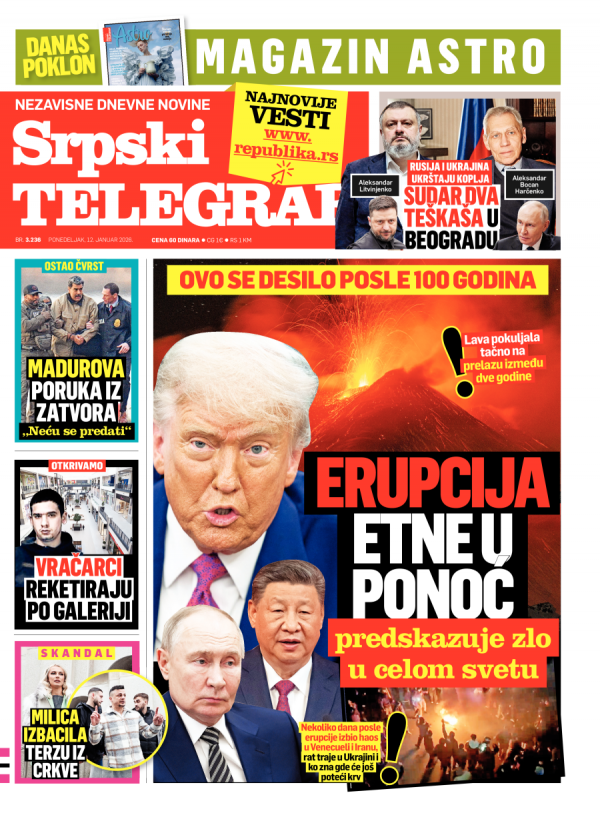 Naslovna strana Srpskog telegrafa za 12.01.2026.