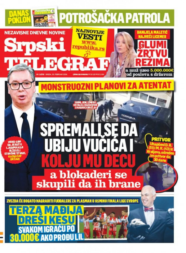 Naslovna strana Srpskog telegrafa za 25.02.2026.