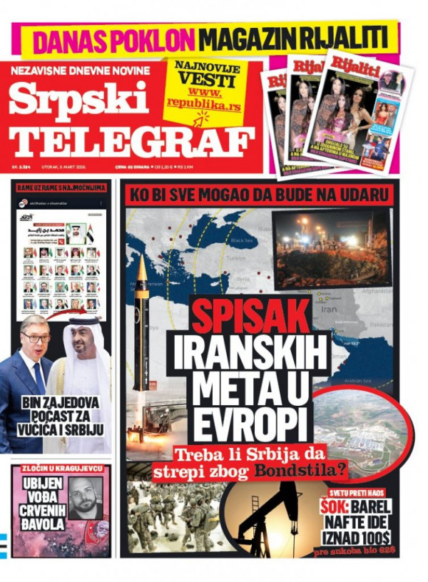 Naslovna strana Srpskog telegrafa za 03.03.2026.