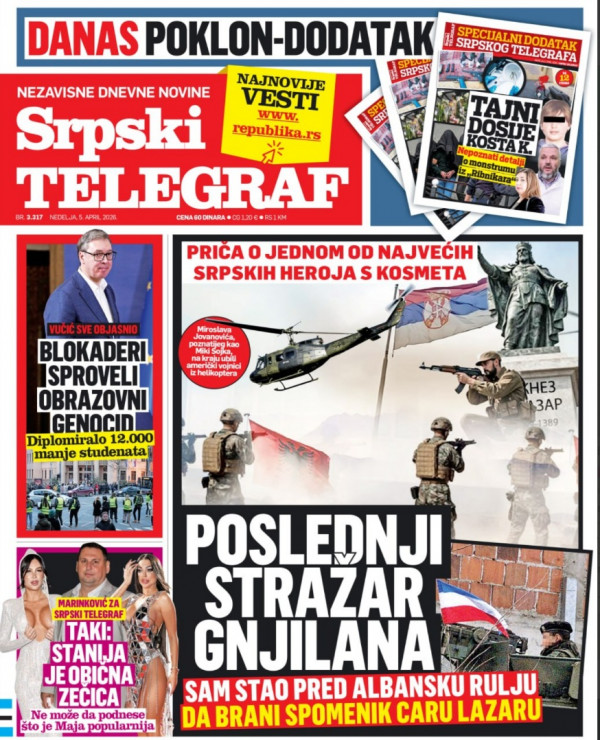 Naslovna strana Srpskog telegrafa za 05.04.2026.