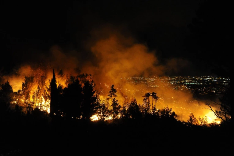 Foto: TanjugKako se navodi, radi se o velikom šumskom požaru koji se zbog jake bure širi u svim pravcima, zbog čega je hrvatsko Ministarstvu odbrane uputilo dva kanadera i dva helikoptera za gašenje požara kao ispomoć, prenosi Index.hr.