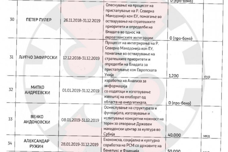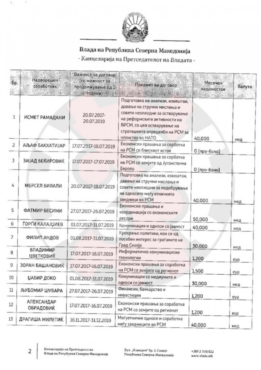 Potpunu listu 39. spoljnih saradnika premijera Zorana Zaeva objavila je u četvrtak "Laboratorija za istraživačko izveštavanje" (IRL) pošto su u poslednja tri dana objavili niz priča sa nekima od njih.