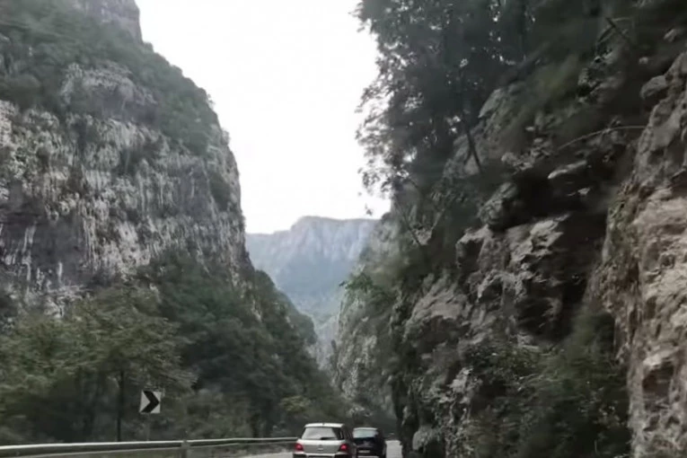 (VIDEO) Stravična vožnja kroz kanjon Morače dok besni oluja, vodopadi se slivaju niz planine na put