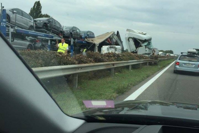 Oko podneva dogodila se saobraćajna nesreća na auto-putu kod Pešte, u Mađarskoj. Od velike jačine udarca kamion marke reno prešao je u suprotnu traku potpuno izgužvan, saznaje Republika.