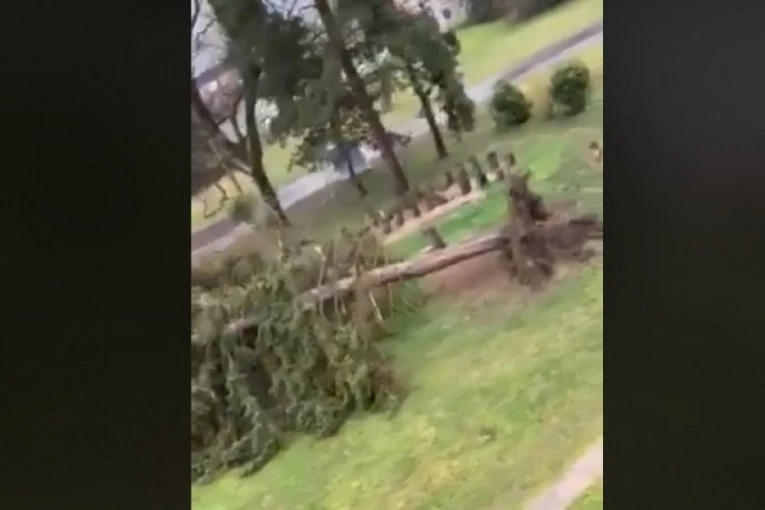 Varaždinski portal je objavio da je jak vetar iščupao veliko stablo kod Ekonomske i trgovačke škole Čakovec, dodajući da niko nije povređen.