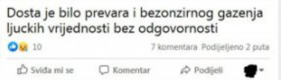 U poruci piše da mu je "dosta prevara i bezobzirnog gaženja ljudskih vrednosti bez odgovornosti".