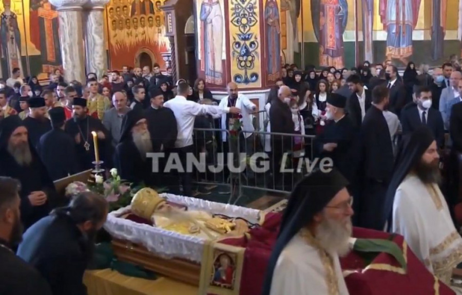 14.00 - Sveštenici nosili kovčeg oko hrama, a zatim i ga spustili na večno počivalište