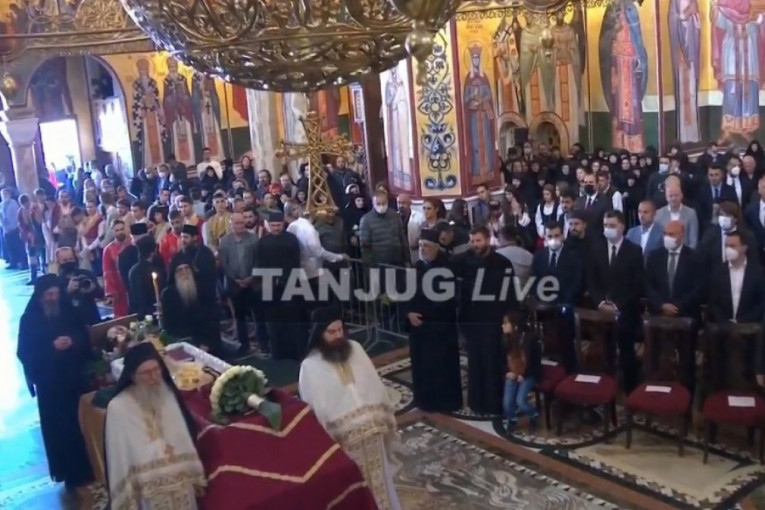 (VIDEO) SAHRANJEN AMFILOHIJE RADOVIĆ: Sveštenici spustili kovčeg u večno počivalište