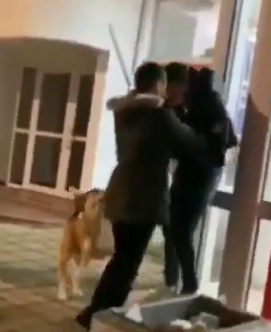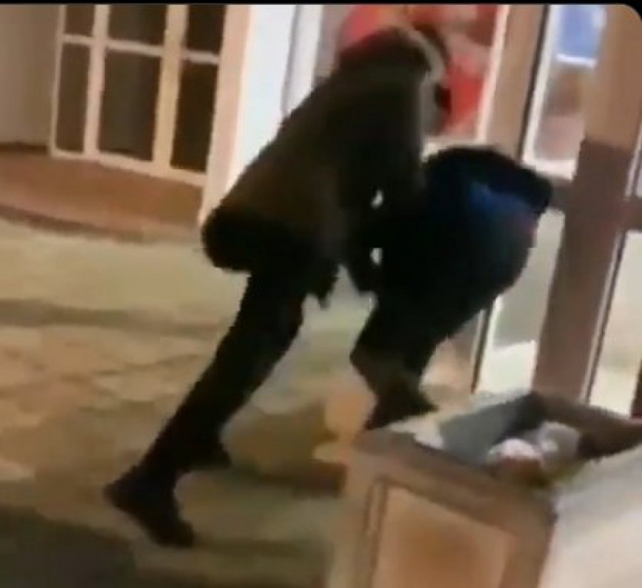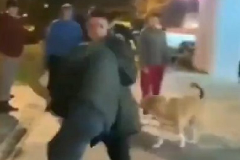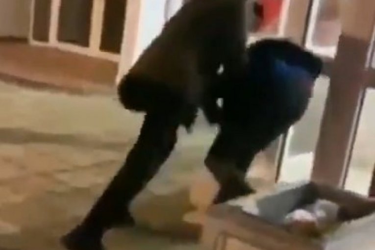 On ga najpre iz sve snage udara po pesnicama po licu, a zatim ga brutalno podiže sa zemlje i nastavlja da ga maltretira i tuče.