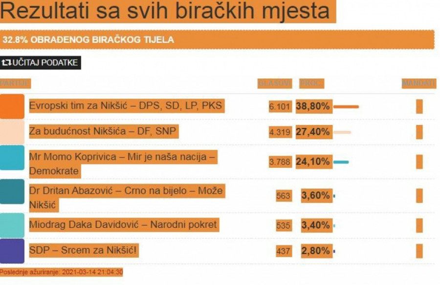 NAJNOVIJI REZULTATI IZBORA U NIKŠIĆU! Prebrojano više od 30 odsto glasova