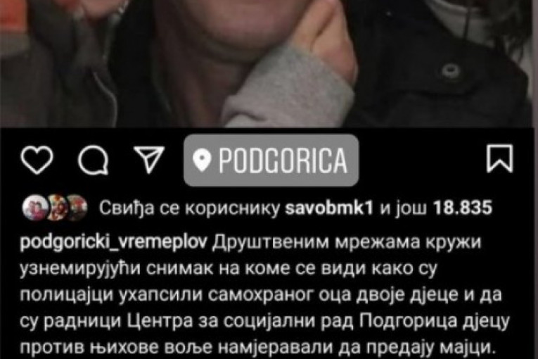 Foto: instagram.com/printscreenNa snimku koji kruži društvenim mrežama vidi se kako radnici Socijalne službe uz pomoć policije na silu otimaju oca od dece dok se ona čvrtso drže za njega ne dozvoljavajući da ode.