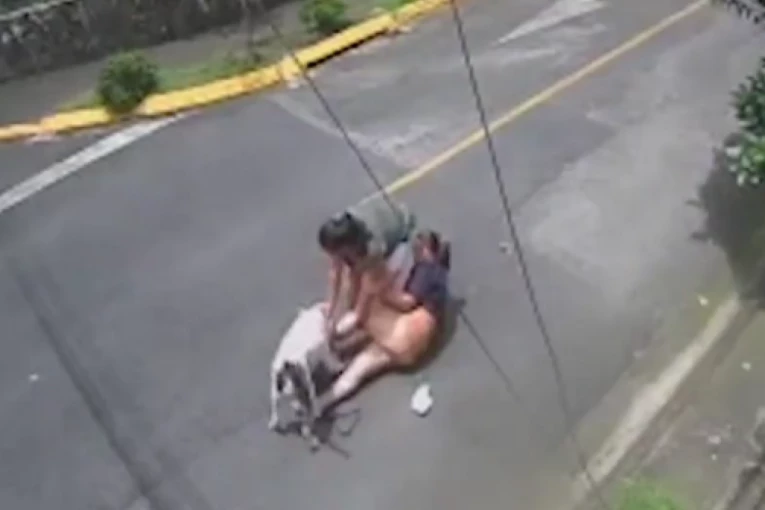 ŠOKANTAN SNIMAK ZABELEŽEN KAMEROM: Pitbul napao ženu i kidao joj stopalo, a onda se pojavio on u pravom trenutku (VIDEO)