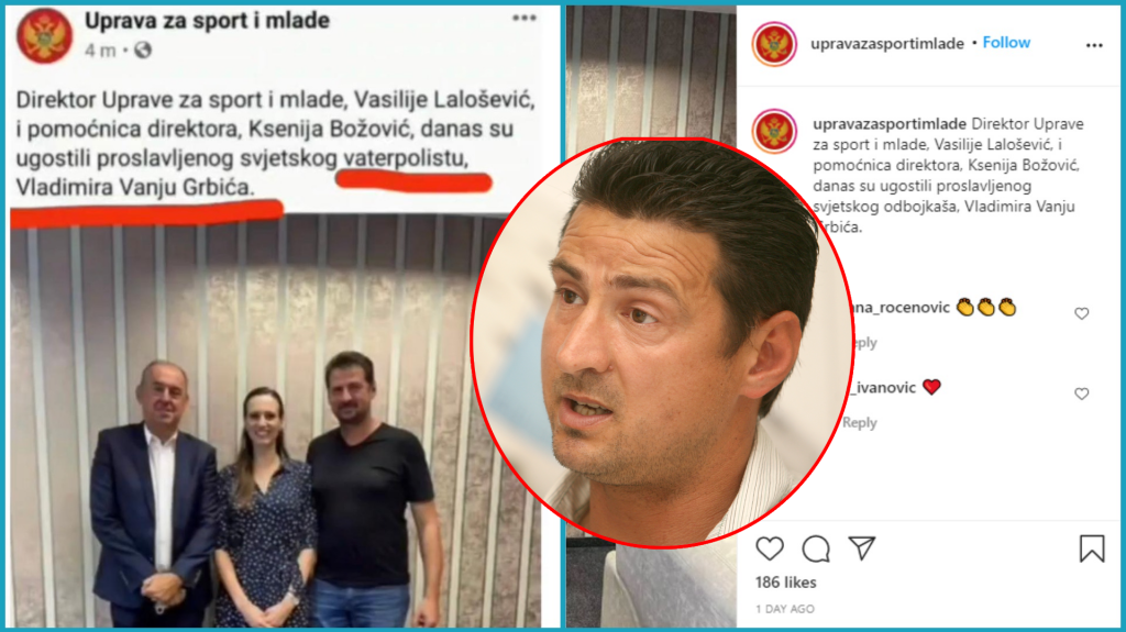 - Direktor Uprave za sport i mlade, Vasilije Lalošević, i pomoćnica direktora, Ksenija Božović, danas su ugostili proslavljenog svjetskog vaterpolistu, Vladimira Vanju Grbića - stajalo je u postu objavljenom na pomenutoj društvenoj mreži.