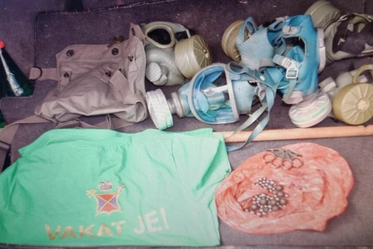 Daljim pregledom vozila pripadnici policije su pronašli šest zaštitnih maski, tri biber spreja, metalni boks, drvenu palicu, 62 metalne kuglice i majice kao i oko 10 grama kokaina.
