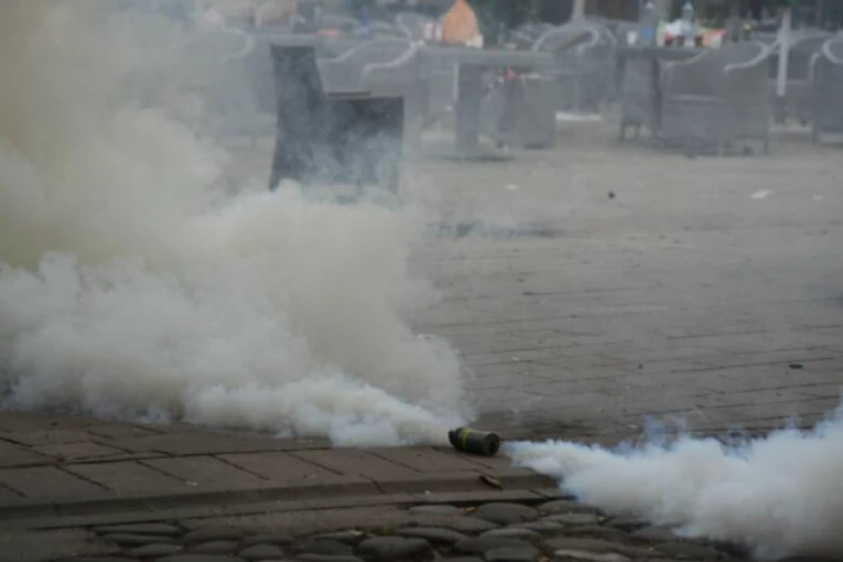 Policija je suzavcima ponovo rasterala demonstrante na Gradskom trgu, piše Pobjeda.