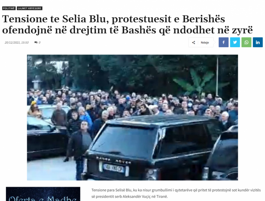 Albanski ekstremisti, uz obilatu pomoć političara sa Kosova, spremili su proteste protiv predsednika Srbije Aleksandra Vučića koji boravi u Tirani u okviru inicijative "Otvoreni Balkan". Oni su montirali i binu za demonstrante u centru Tirane .