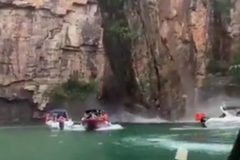 Najmanje šest osoba je poginulo kada je veliki komad stene pao sa litice na čamce koji su plovili u blizini vodopada na jednom brazilskom jezeru.