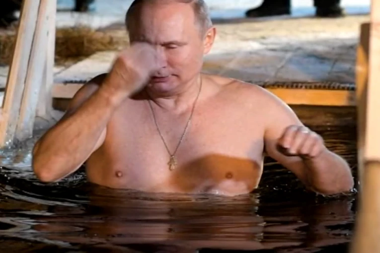 Putin tradicionalno na Bogojavljenje zaranja u ledenu vodu.