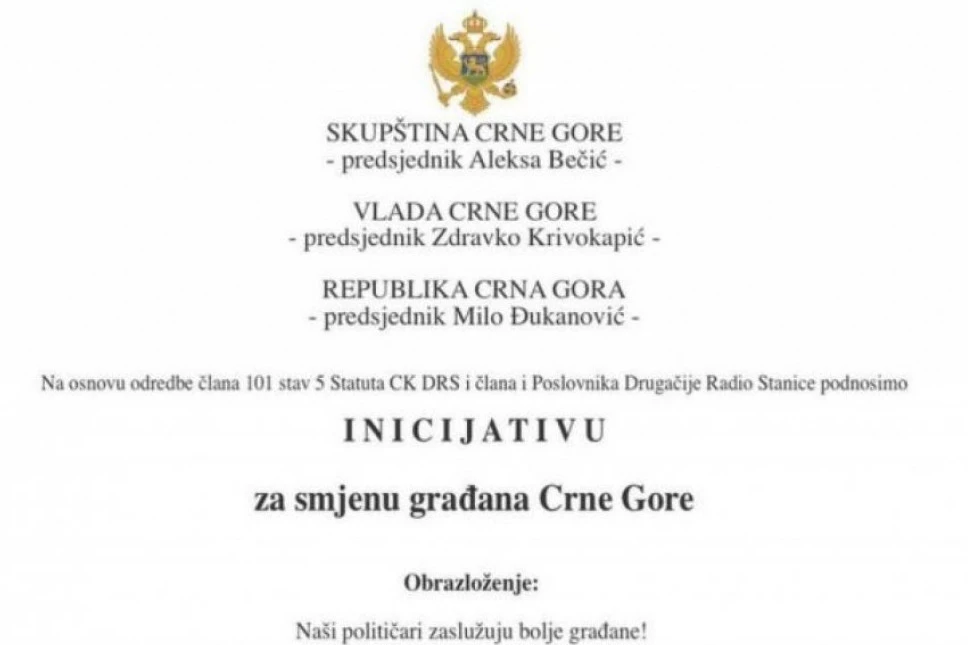 Naime, društvenim mrežama se širi kreativna „inicijativa“, a inicijative su ovih dana u modi, u kojoj se traži smena građana Crne Gore.