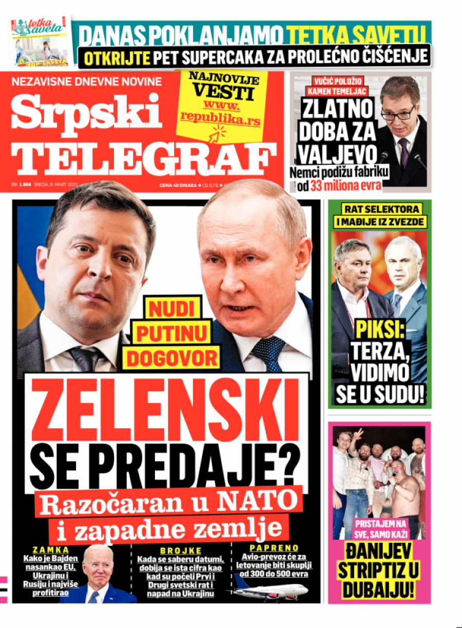 Srpski telegraf u štampanom izdanju za sredu 9. mart donosi pregršt važnih i interesantnih priča.