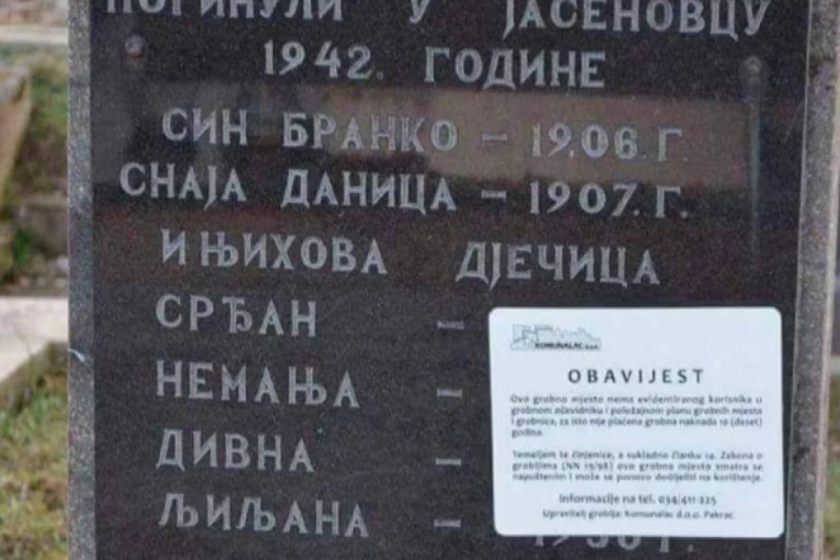 Već nekoliko godina pojavljuje se vest o grobu u Hrvatskoj, odnosno vest da je preko groba srpske dece i njihovih roditelja prelepljeno obaveštenje o uklanjanju spomenika, jer niko ne plaća državi održavanje, kako piše na obaveštenju prelepljenom preko groba.