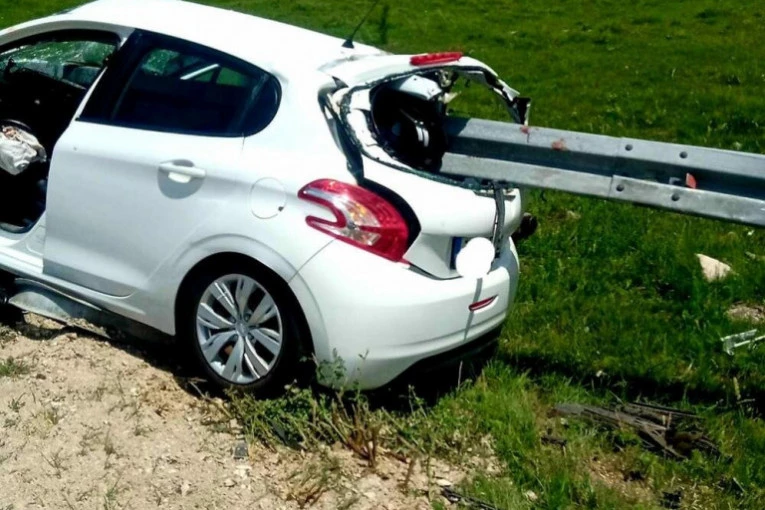 DA LI JE OVO SREĆA U NESREĆI? Bankina proletela kroz automobil, svi putnici sačuvali glavu (FOTO)