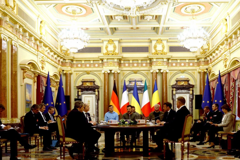 Kako navodi list, dok su bili u Kijevu Olaf Šolc , Emanuel Makron i Mario Dragi zalagali su se za davanje Ukrajini statusa kandidata za članstvo u Evropskoj uniji.